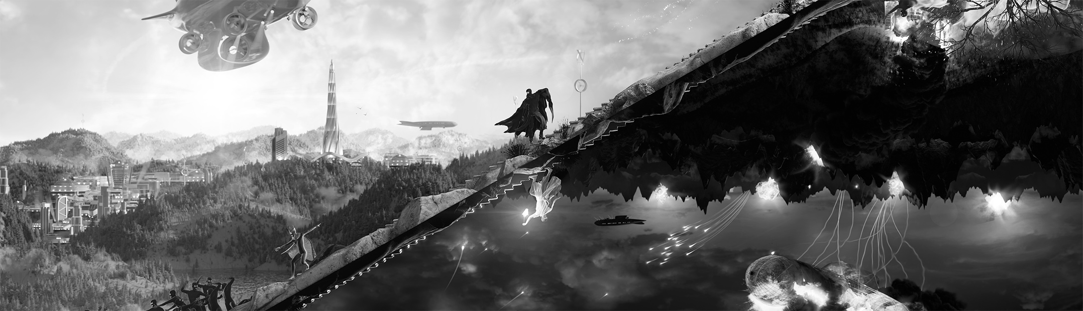 It is a two-perspective render with a balanced composition so that depending on where you look, it is still readable and balanced with the story I wanted to convey. it uses a combination of techniques, including forced perspective, to get the look I wanted and the idea I envisioned.